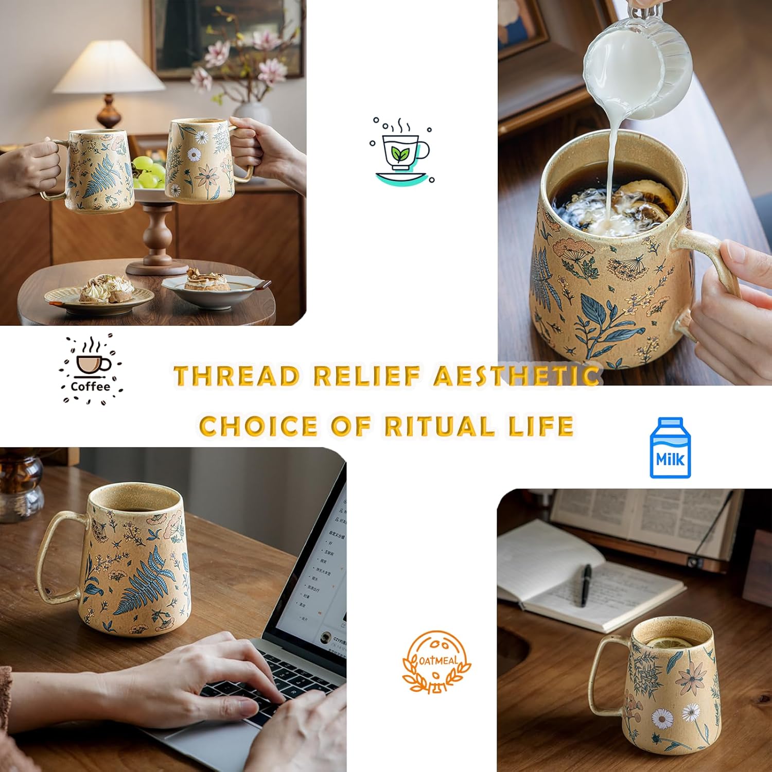 Vintage Hand-Painted Floral Ceramic Mug 25oz Large Capacity Coffee Milk Tea Cup